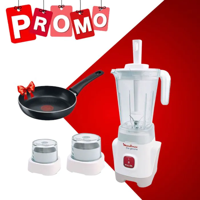 Blender Avec Deux Moulins LM2411EG 400W Blanc MOULINEX +Poêle 24 CM TEFAL Gratuit