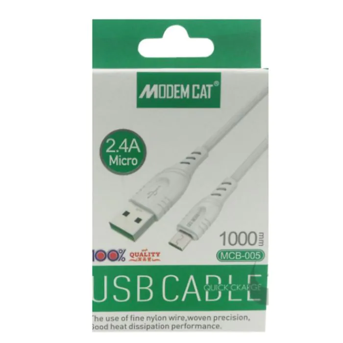Le Micro USB est un type de câble universellement compatible avec de nombreux appareils, vous permettant de recharger vos smartphones, tablettes et autres gadgets en toute simplicité. Fabriqué par la marque de confiance MODEM CAT, ce câble garantit durabilité et performance. Sa conception intelligente assure une transmission de données rapide et une charge sans interruption, vous permettant de rester connecté à tout moment.