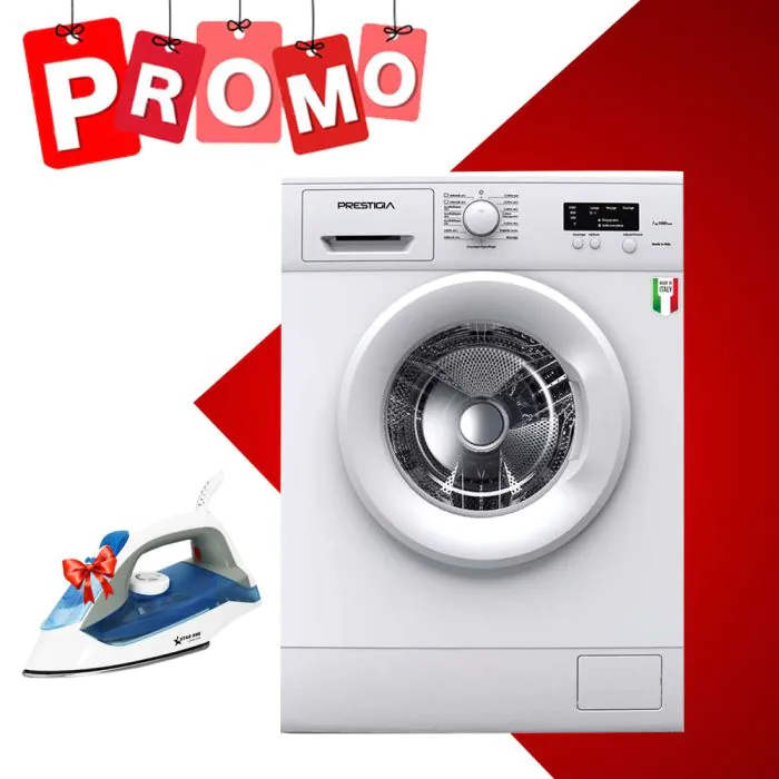 Lave Linge Frontal G710 PRESTIGIA 7KG Blanc + Fer à Repasser Gratuit