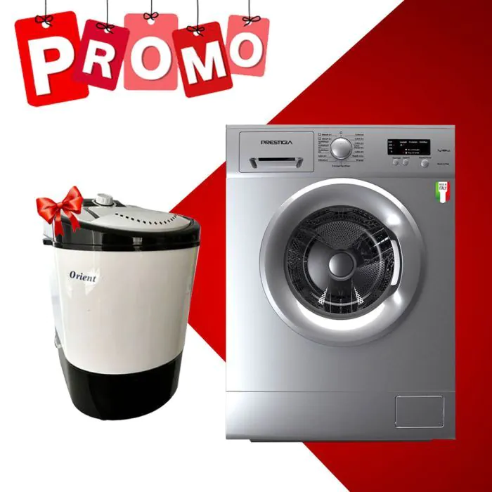 Lave Linge Frontal G710S PRESTIGIA 7KG Silver + Machine à Laver Semi-Automatique Gratuite